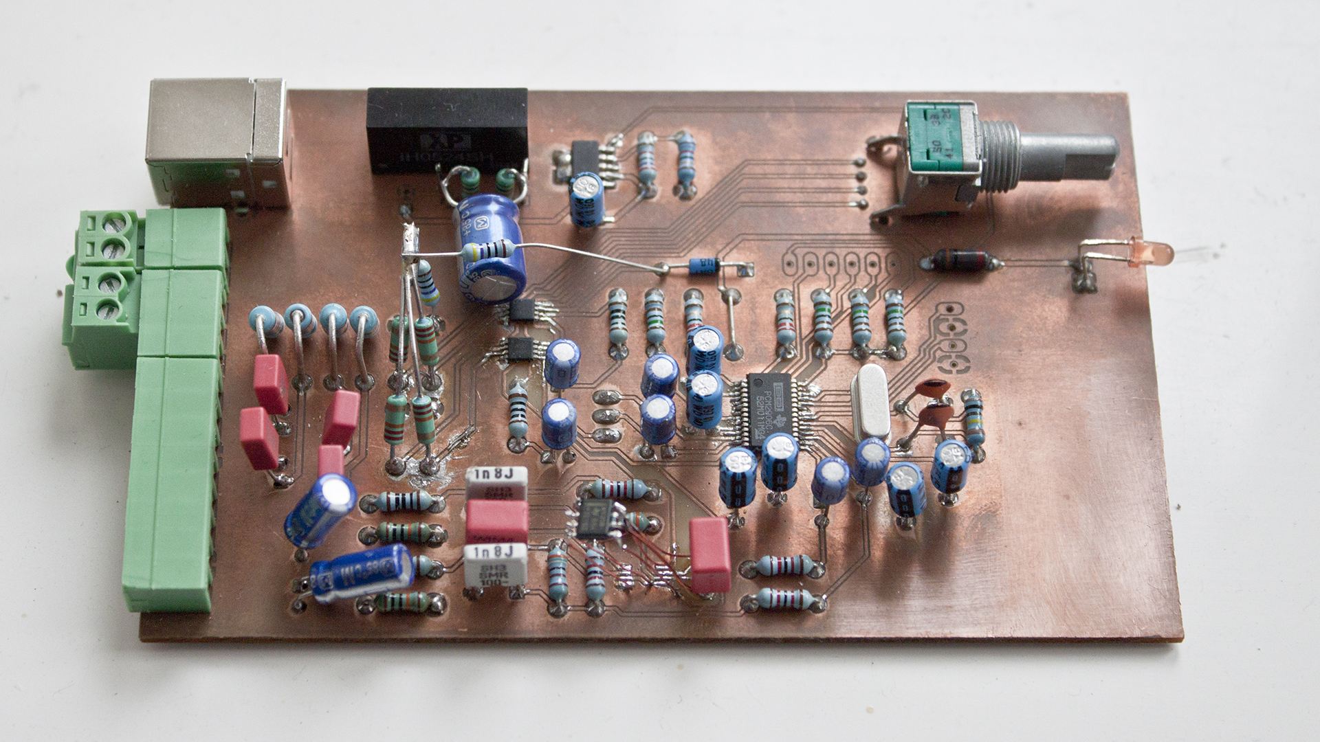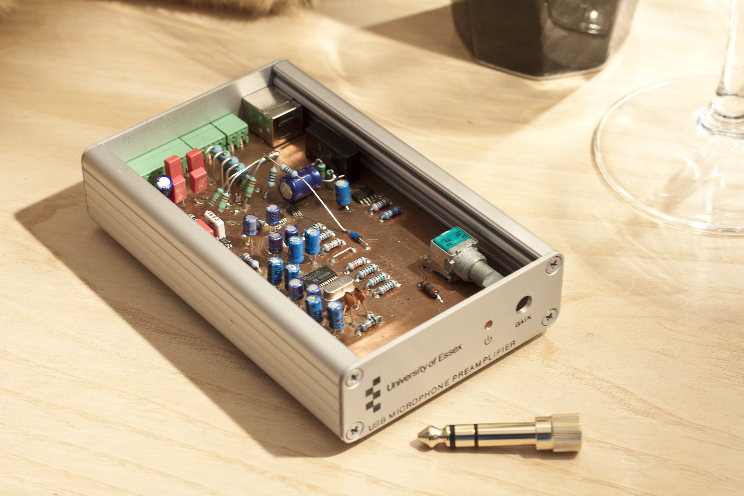 A few options were included, such as jumpers to switch between mono/stereo input and enable P48 phantom power, and a line audio output for convenience. Power would be derived from USB (another disadvantage to the units we had been using, most requiring their own power supplies), and the device would need to allow driverless ‘plug and play’ installation on our teaching PCs.
